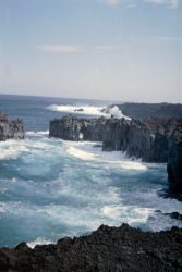 Mar rompiendo y arco natural volcánico